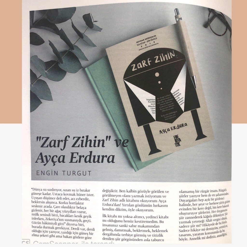 Yazılar / Haberler 11 Mart 2021 Ayça Erdura Edebiyatist Dergisi Kasım Aralık 2020 Şair Engin Turgut’un Zarf Zihin kitabımla ilgili yazısı